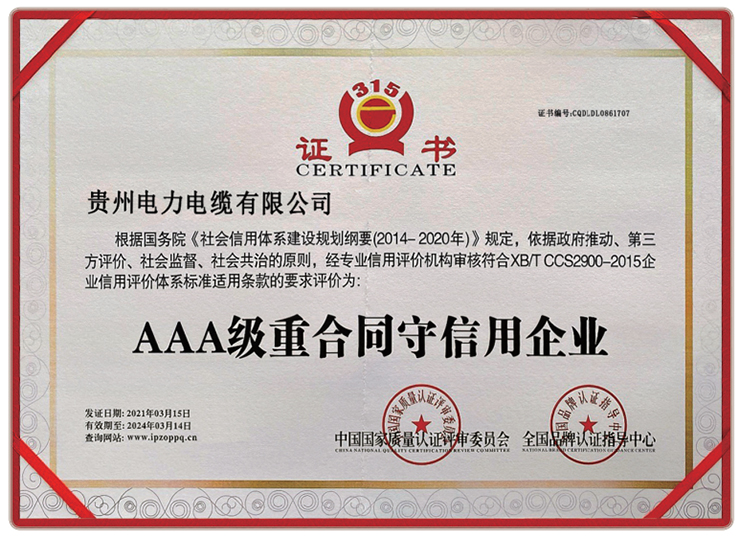 • AAA級重合同守信用企業(yè)